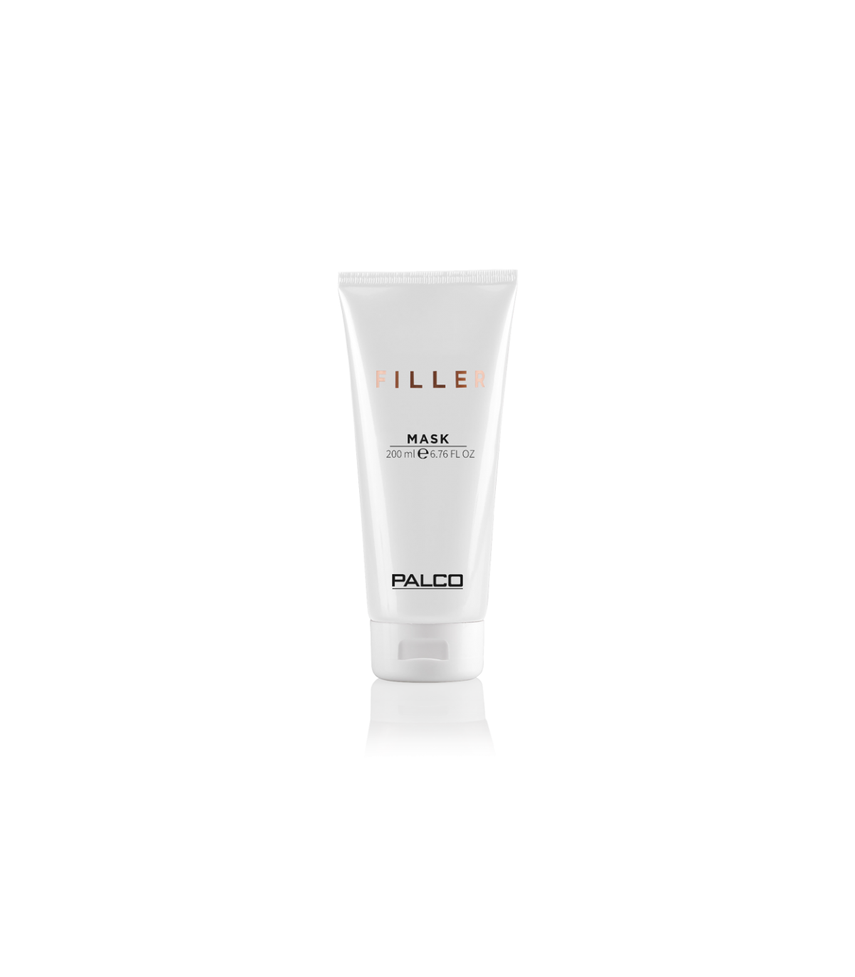 Maska wypełniająca z mieszanką keratyny roślinnej i kwasu hialuronowego, która głęboko odżywia i regeneruje strukturę włosa.